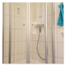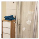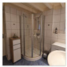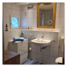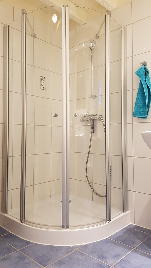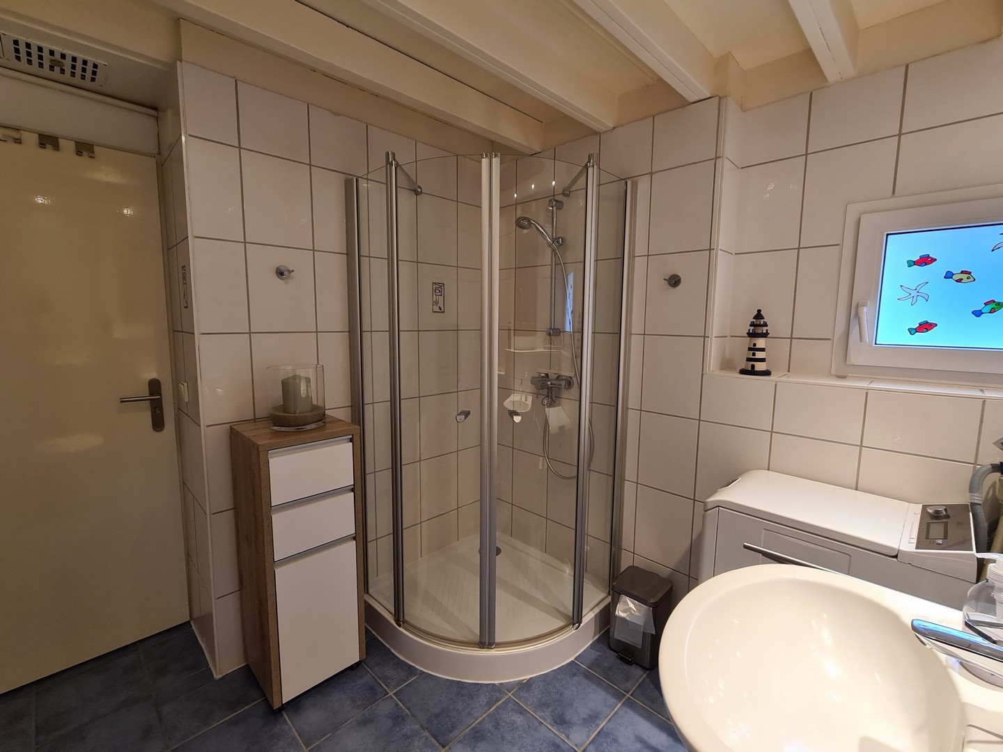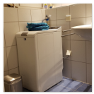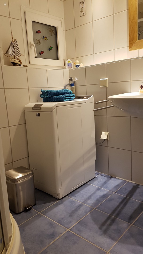Bad mit Runddusche und Waschmaschine für die kleine Wäsche zwischendurch